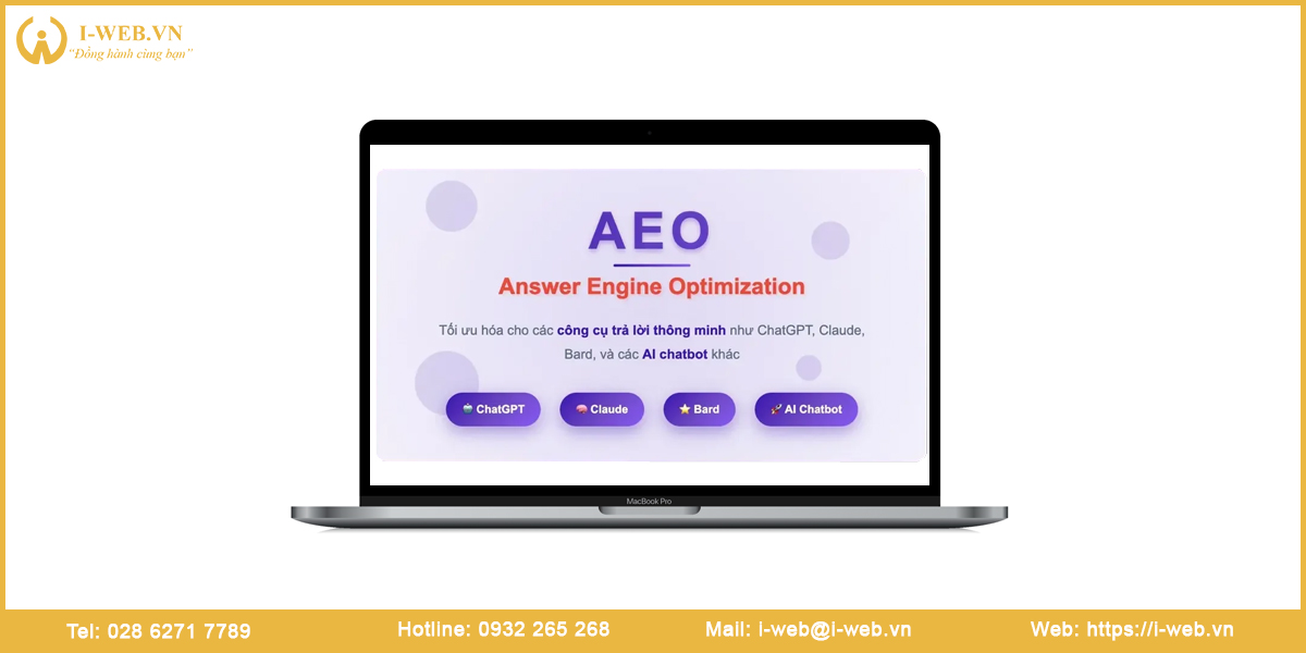 Tại I-WEB, các giải pháp thiết kế website luôn được xây dựng theo tiêu chuẩn SEO hiện đại kết hợp với các xu hướng tối ưu mới như AEO, giúp website của quý khách không chỉ đạt thứ hạng cao trên công cụ tìm kiếm mà còn có khả năng hiển thị nổi bật trong các kết quả trả lời nhanh.